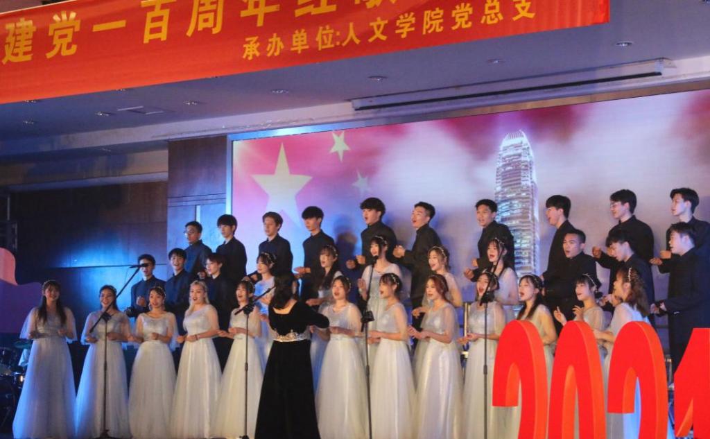 不忘初心跟党走,传承百年爱国情。6月29日晚,由学校党委主办、人文学院党总支承办的庆祝中国共产党成立100周年红歌大赛在人文艺术楼四楼报告厅举行。学校党委书记黄学茭,副书记张德宜、鲁岩,校长助理孔练光,全体党委委员,各二级学院党组织负责人参加活动。