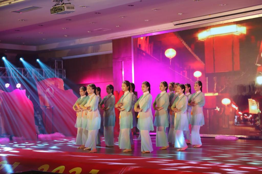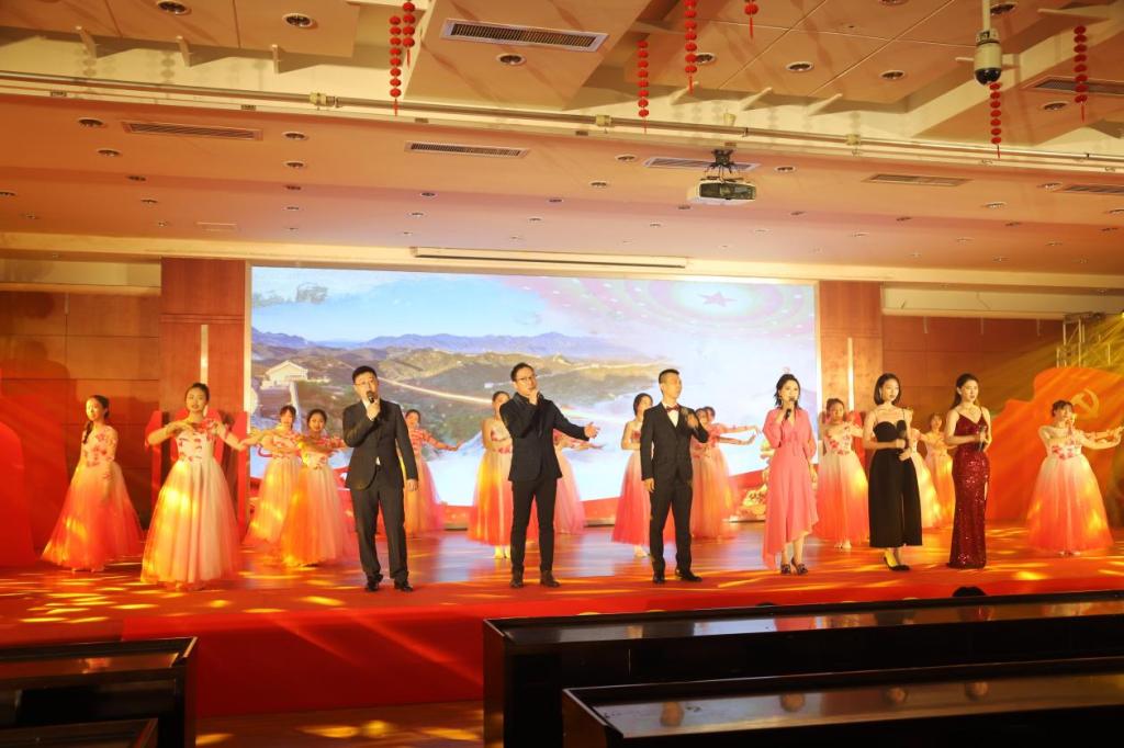 最后,晚会在全体人员挥舞着手中旗帜齐声高唱《没有共产党就没有新中国》的嘹亮歌声中结束。