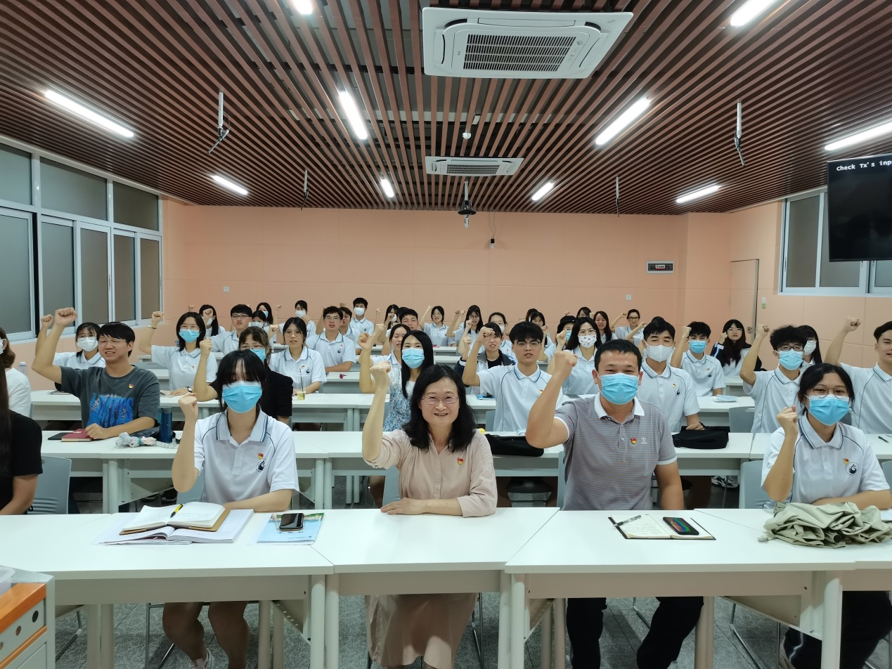 最后,在黄学茭的提议下,全体党员集体朗诵——“我们都是追梦人,为实现第二个百年奋斗目标,为实现中华民族伟大复兴的中国梦准备着;时刻准备着;不忘初心,青春朝气永在,志在千秋,百年仍是少年,奋斗正青春!青春献给党!请党放心,强国有我!请党放心,强国有我!请党放心,强国有我!请党放心,强国有我!”
