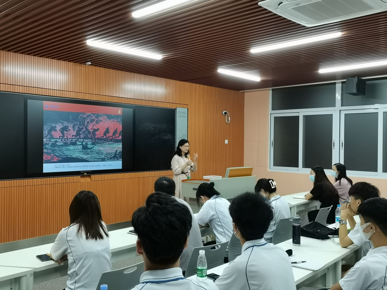 同时,黄学茭结合艺术与设计学院专业特点,选择以党史为题材的几幅具有代表性的美术作品,讲解美术经典作品中的党史,感受中国共产党百年走过的艰苦岁月、浴血奋战的感人壮举、中华人民共和国欣欣向荣的景象……让青年党员同志们从美术作品中学党史,领悟习近平总书记的重要讲话精神。