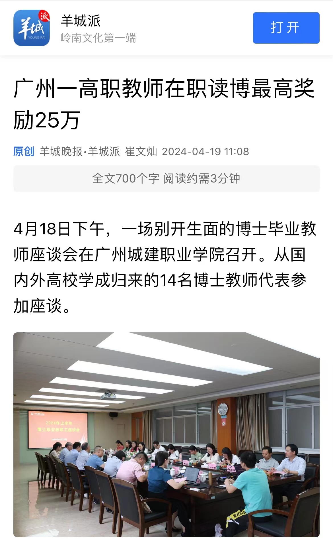 4月18日下午,一场别开生面的博士毕业教师座谈会在广州城建职业学院召开。从国内外高校学成归来的14名博士教师代表参加座谈。