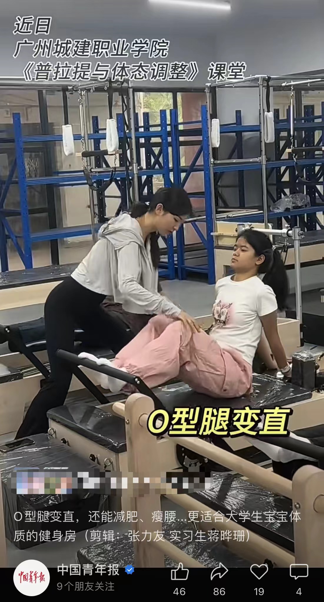 《中国青年报》视频号报道永利官网《普拉提与体态调整》课程。