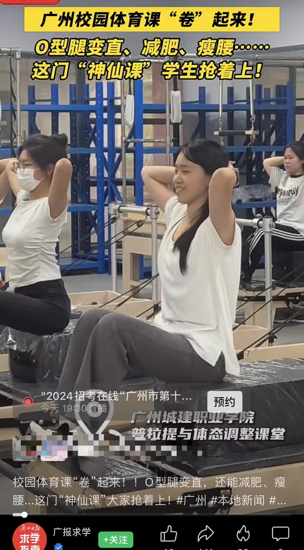 《广州日报》视频号报道永利官网《普拉提与体态调整》课程。