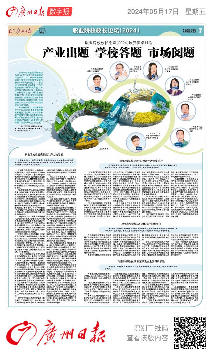 为更好服务地方经济社会发展,职业教育需要深化校地、校企合作,推动产教深度融合,助力新质生产力发展。在实践过程中,广东各校收获了较成熟的经验与做法。