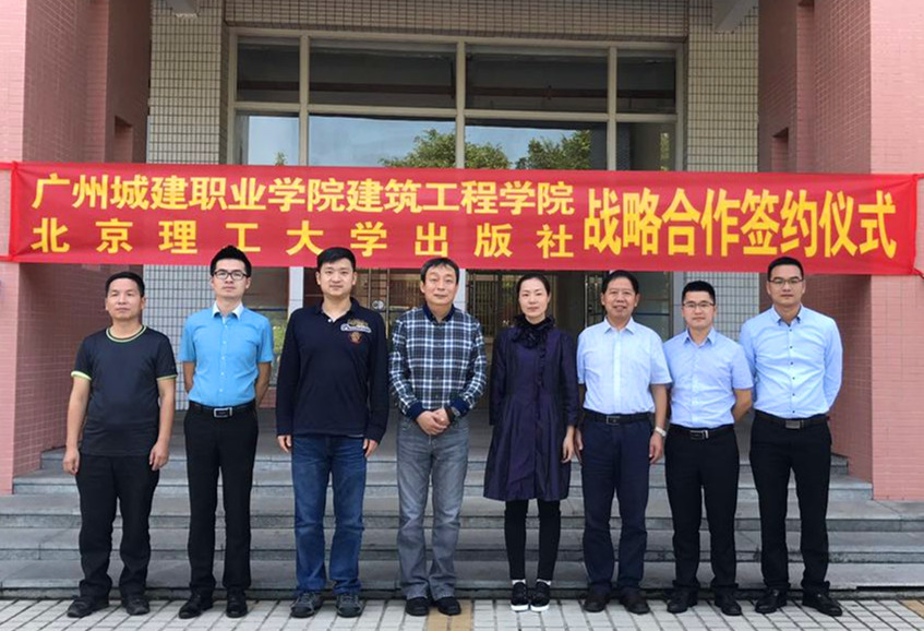 刘助理介绍了北京理工大学出版社的发展历程及行业优势,他指出,建工学院与该出版社有许多共同点,希望能从专业建设、出版社产品质量及品牌建设等方面入手,实现资源整合,资源共享,共同发展。贾建业院长代表建筑工程学院向刘铁社长助理一行表示热烈欢迎,并和李鹏社长等与会人员围绕“十三五”国家规划教材出版、学术专著出版与论文发表等方面的合作进行了详细研讨。随后,周晖副校长、刘铁社长助理代表双方在合作协议上签字,广州城建职业学院建筑工程学院与北京理工大学出版社正式达成战略合作协议。