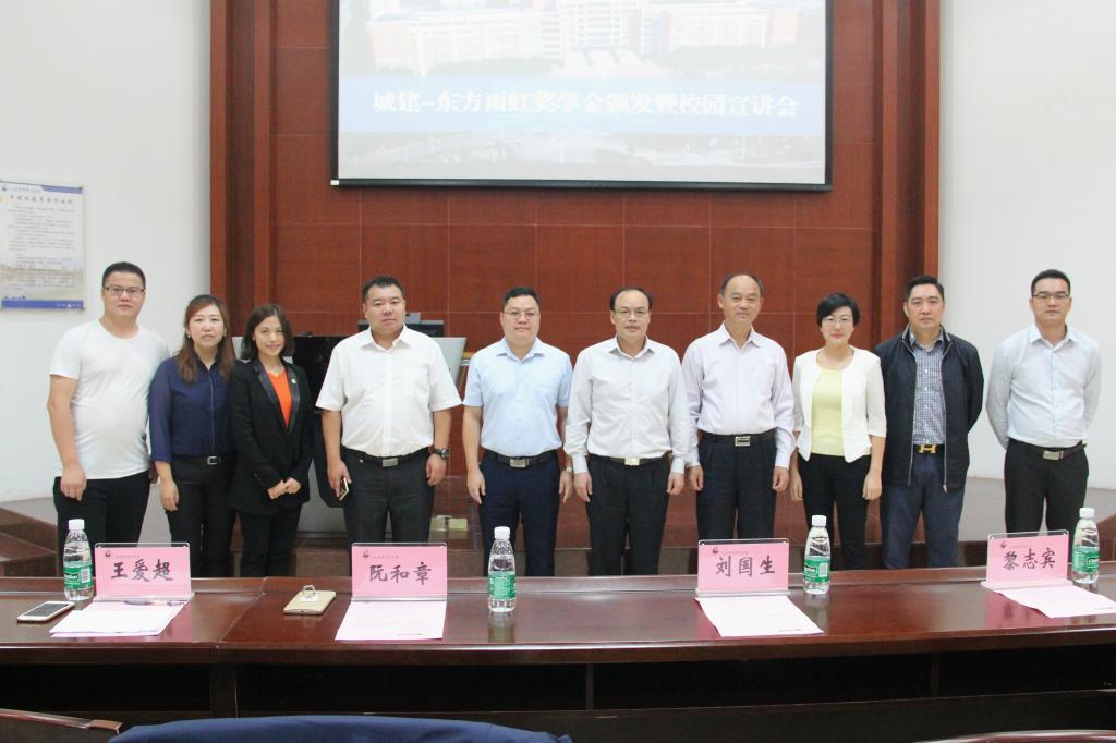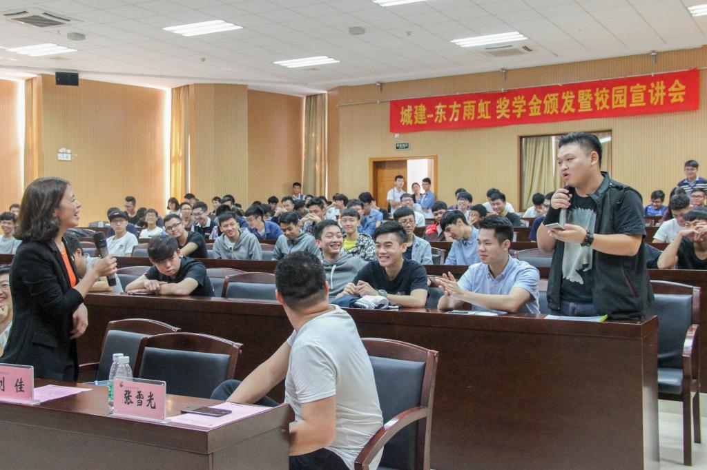 为切实做好我院毕业生就业工作,拓宽毕业生就业渠道,建筑工程学院于10月18日上午在建工机电楼A101举办东方雨虹奖学金颁发仪式暨校园宣讲会。校长刘国生,东方雨虹集团培训学院院长阮和章,东方雨虹华南分院院长工程部副总王爱超及公司相关负责人,继续教育学院副院长黎志宾,建筑工程学院副院长文建、张双,办公室主任陆伟林及近200名学生参加了会议。