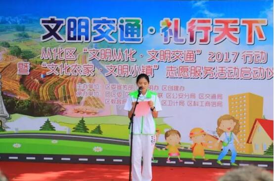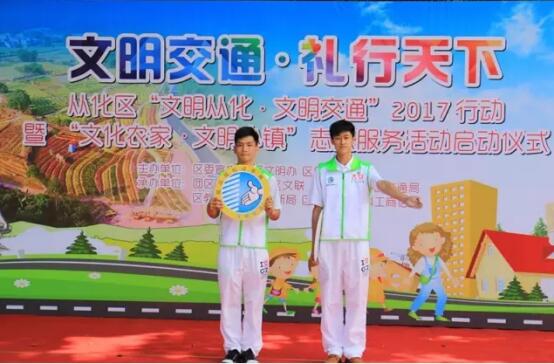 5月25日,由区委宣传部、区文明办、区创建办主办,团区委、区科协等单位联合承办的“文明从化-文明交通”2017行动暨“文化农家-文明小镇”志愿服务活动在从化街口街青云公园广场启动。广州市委宣传部副巡视员李文驹,区委常委、宣传部部长李朔熹,区政协副主席、区科协主席任洪华,团区委书记郑树歆,建筑工程学院学生作为从化高校志愿者代表参加本次活动。