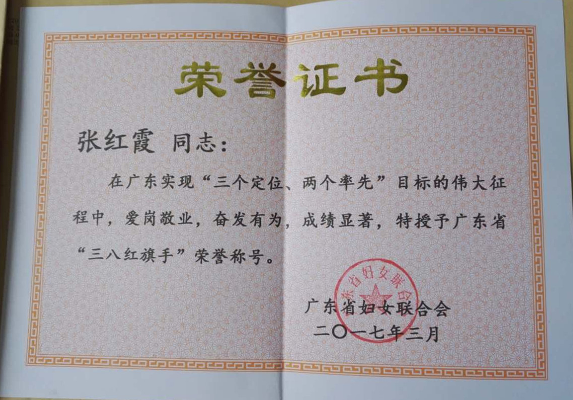 日前,广东各界妇女纪念“三八”国际劳动妇女节107周年大会在广州召开,会议表彰了2016年度广东省“三八红旗手”、“三八红旗集体”和“巾帼文明岗”。永利官网张红霞老师荣获广东省“三八红旗手”称号,这是永利官网首获此类荣誉称号。