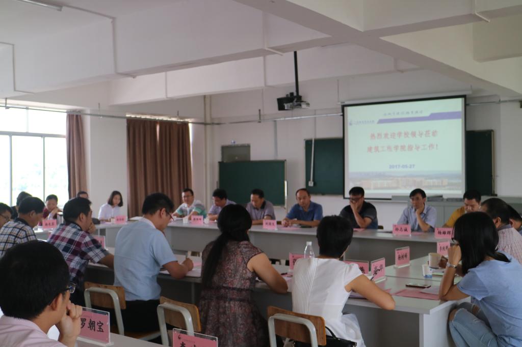 5月27日上午,校长刘国生,党委书记杨清国,副校长李志强率教务处、人事处、实训管理与设备处、科技处等部门负责人到建筑工程学院调研创新强校“2235”工程推进情况,建筑工程学院全体院领导、教研室正副主任及骨干教师、辅导员代表参加调研座谈会。会议由副校长王媚莎主持。