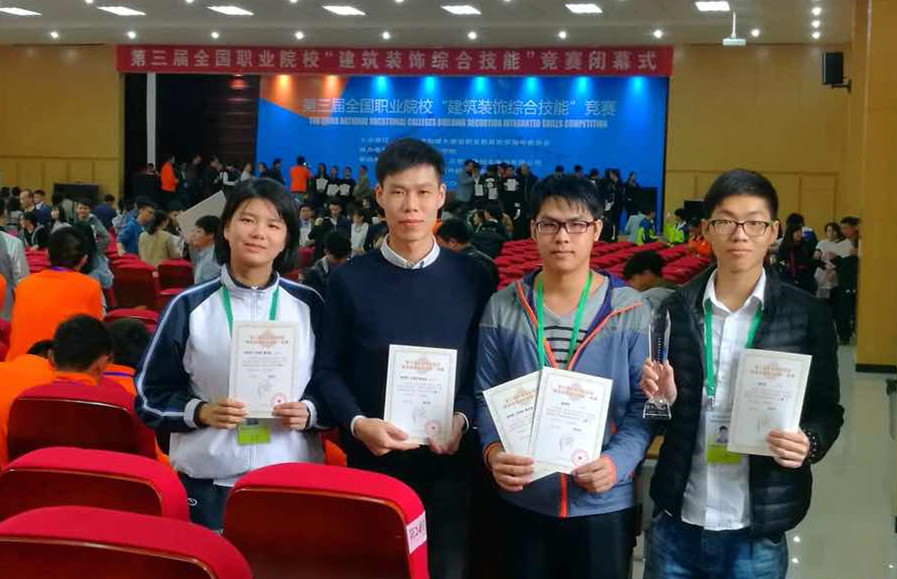 由全国住房和城乡建设职业教育教学指导委员会主办的第三届全国职业院校“建筑装饰综合技能”竞赛于10月21至23日在山东省滕州市枣庄科技职业学院举行,来自全国26个省市、自治区的80所高职院校81支代表队243名选手参加了本次比赛。永利官网代表队荣获团体二等奖,建筑装饰施工图绘制二等奖,建筑装饰工程量清单编制个人单项二等奖3项。