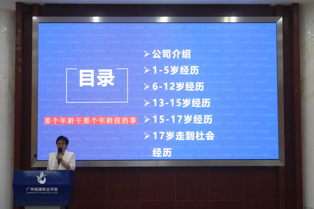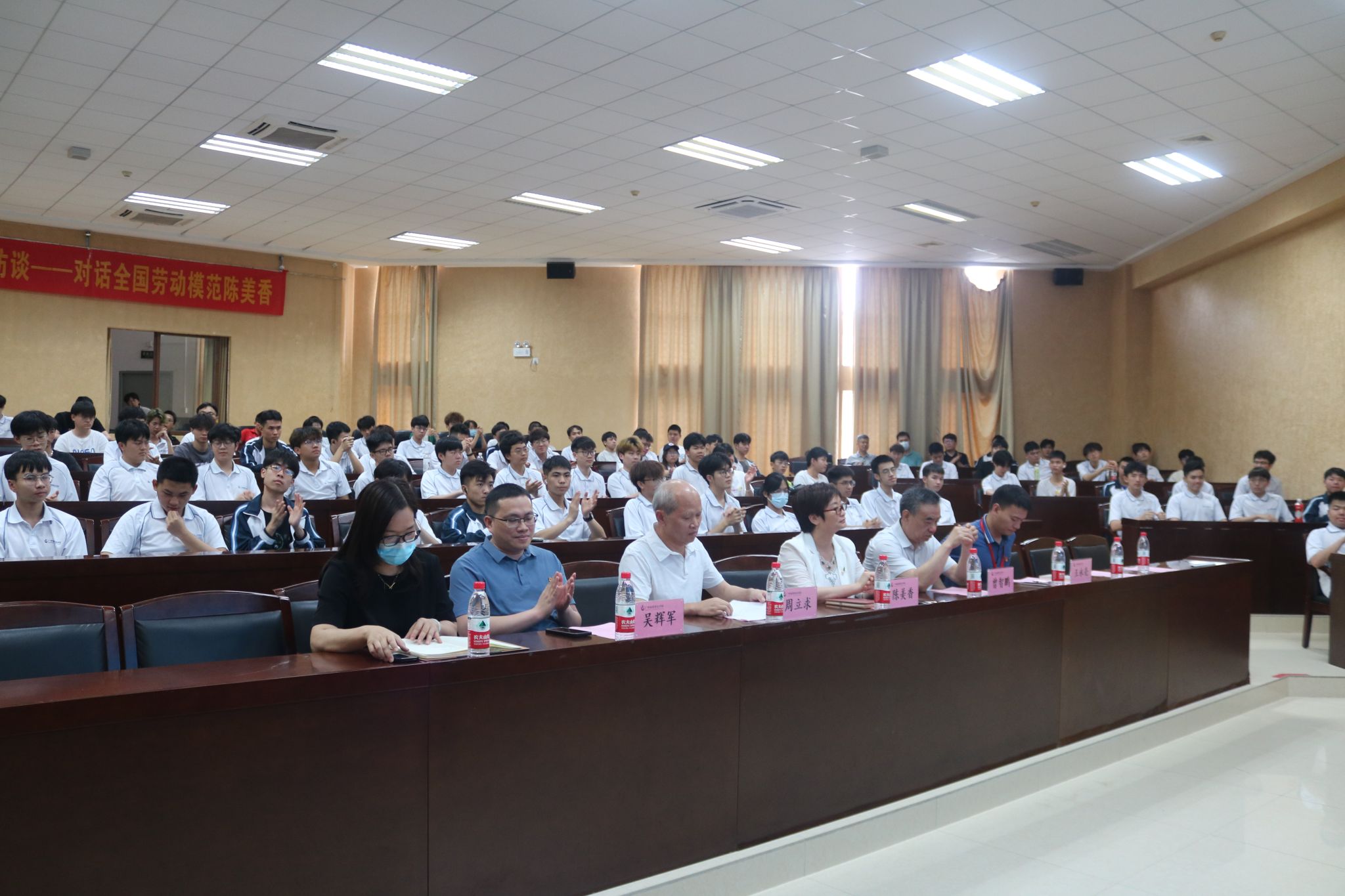 陈美香是从化区历史上获得“全国劳动模范”的第一位外来务工人员。从1975年在贵州瓮安县出生,到2013年6月加入中国共产党,再到任职广州市建凌电器有限公司常务副总经理、党支部书记、工会主席,她用自己25年的人生经历向与会的师生们讲述了她从车间一线工人成长为全国劳动模范的精彩励志故事。