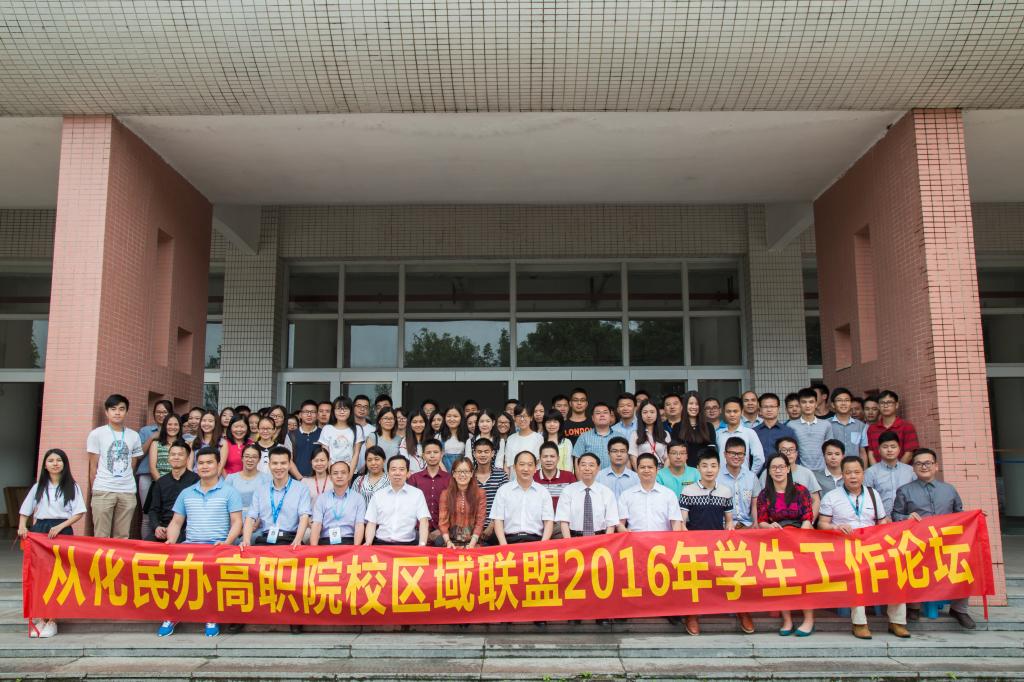 5月10日上午,从化民办高职院校区域联盟2016年学生工作论坛在永利官网建工机电楼A101会议室召开。学校党委书记杨清国,yL23411永利官网登录党委书记吕清,广州南洋理工职业学院党委副书记、副院长胡琼妃及联盟高校学生处处长、院系领导、辅导员等近150人参加了本次论坛。论坛由学生处处长孔练光主持。