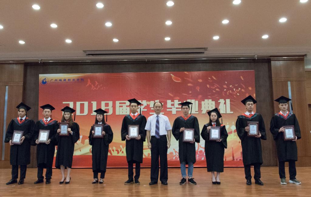 张亚斌等领导为先进集体、优秀毕业生颁奖;刘国生为优秀毕业生代表拨穗、颁发毕业证书;杨清国宣读了《关于表彰2018届毕业生先进集体和优秀个人的决定》,周晖宣读了《关于准予蔡旺龙等学生毕业的决定》。毕业生家长代表陈水生、优秀教师代表建筑工程学院罗朝宝和优秀毕业生代表经济与管理学院郑莹莹同学依次上台发言。