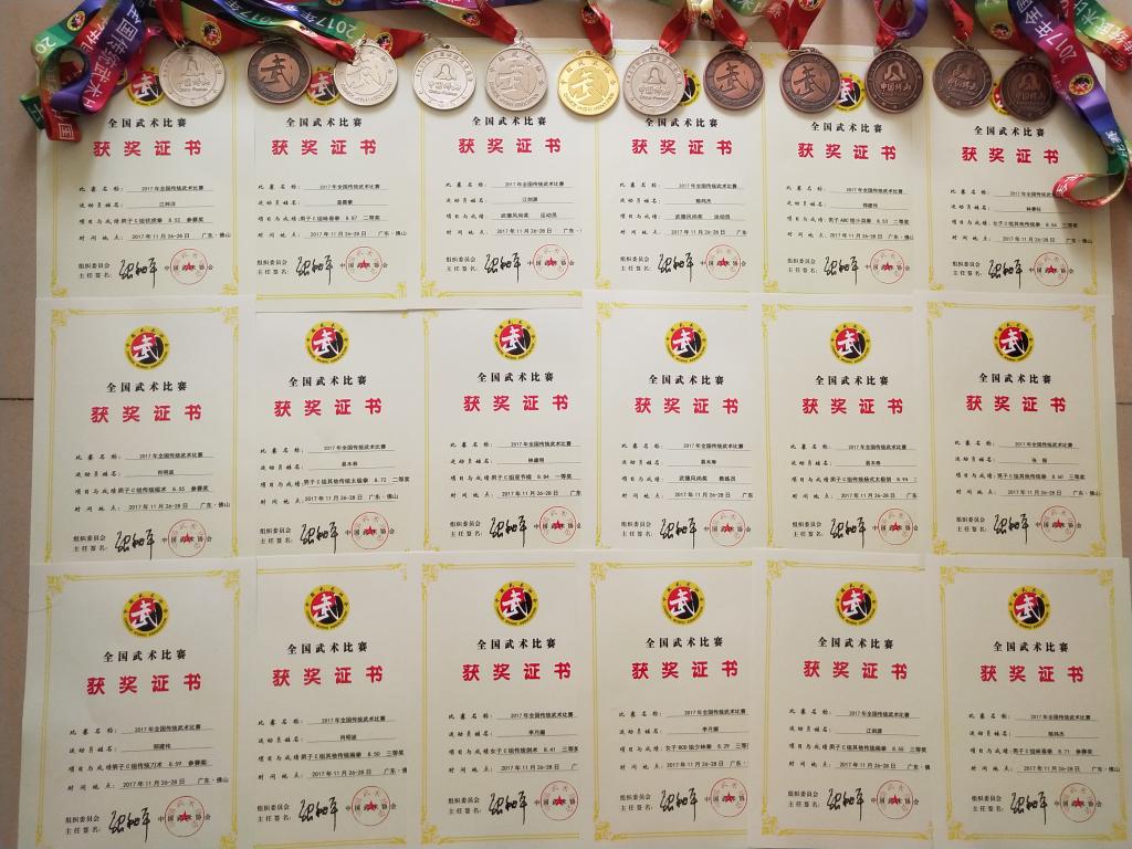 学校在2017年全国传统武术比赛中获奖情况