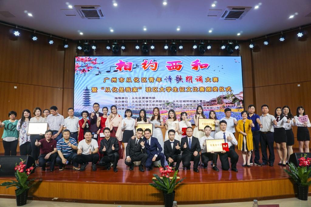 5月27日下午,由从化区委宣传部牵头,从化区文联、城郊街道办事处主办的“相约西和”从化区青年诗歌朗诵大赛暨“从化是我家”驻区大学生征文比赛颁奖仪式在广州南洋理工职工学院第二学术报告厅隆重举行。从化区人大常委会副主任谢焕扬,区政协副主席任洪华,区委宣传部常务副部长杨名友,各兄弟区文联、驻区各高校等单位有关领导应邀出席了本次活动,驻区高校师生代表、参赛选手共400多名参加了本次诗歌朗诵总决赛和征文大赛颁奖仪式。