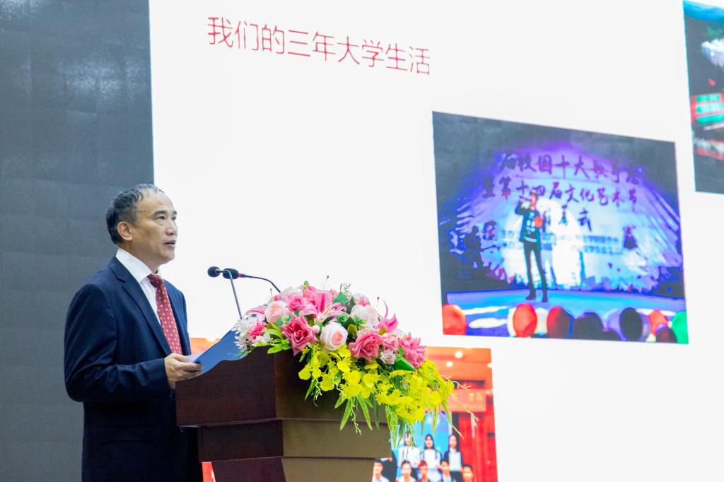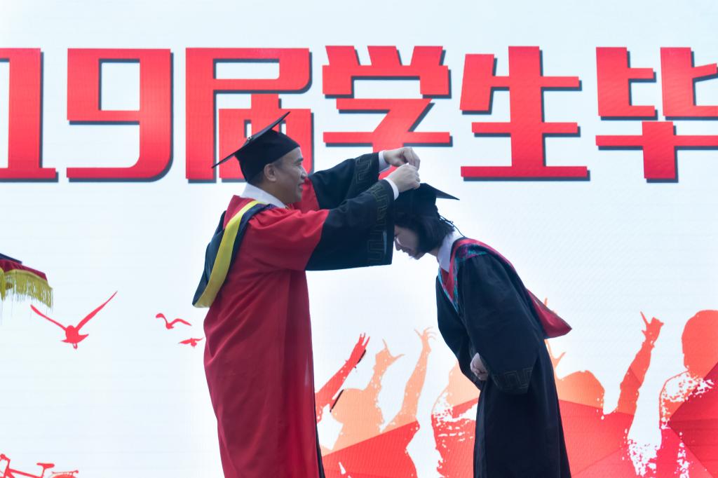 毕业典礼在艺术团星舞团《憧憬未来》的欢快舞蹈中拉开序幕。蒋新华校长致辞,向顺利完成学业的6013名毕业生表示祝贺,向精心培养学生的各位老师表示感谢,向到场的学生家长表示欢迎。蒋校长充分肯定了2019届毕业生在校期间获得的奖项及荣誉,并希望同学们,走出校门,勇于面对挑战;走进社会,敢于承当责任;走上舞台,善于博出精彩;走向未来,要懂得感恩,要终身学习,要善于思考,要不惧挑战、勇往直前!