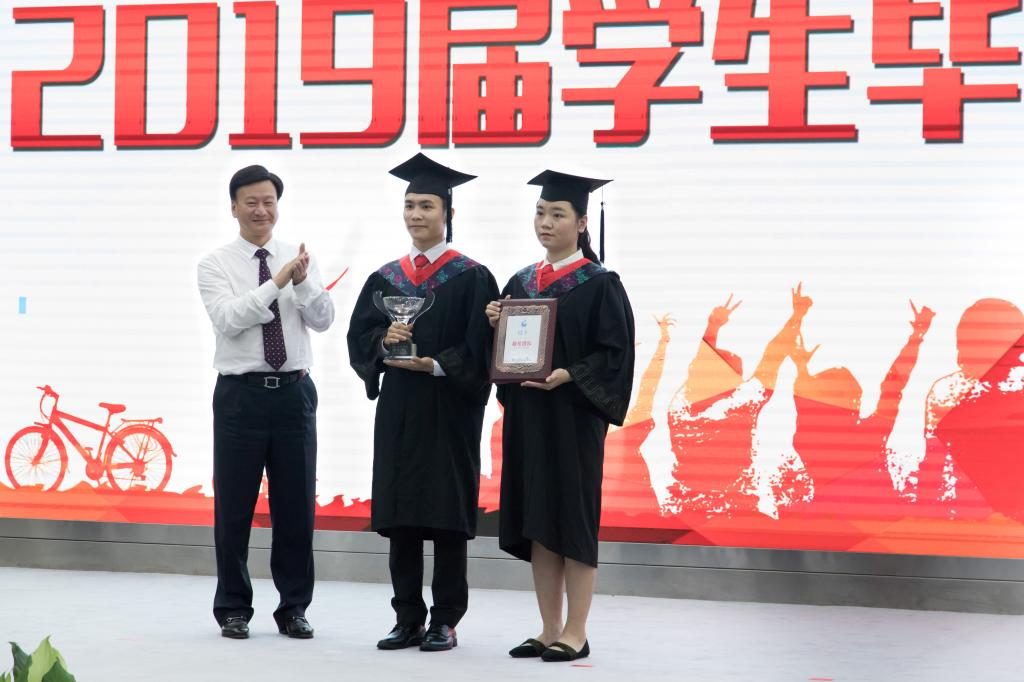 杨清国书记宣读了《关于表彰2019届毕业生先进集体和先进个人的的决定》,周晖副校长宣读了《关于准予陈志滔等学生毕业的决定》,优秀教师代表何婷为毕业生送上祝福,祝福毕业生展翅高飞;毕业生家长代表刘坤祥先生上台发言,感谢学校的教育和老师们的栽培,并寄语全体毕业生前程似锦;优秀毕业生代表邱俊景同学坚定地表示,今后会继续秉承“修德、砺能、崇学、尚行”的校训,带着老师和父母的期望,把握时代脉搏,锐意进取,继续创造辉煌。