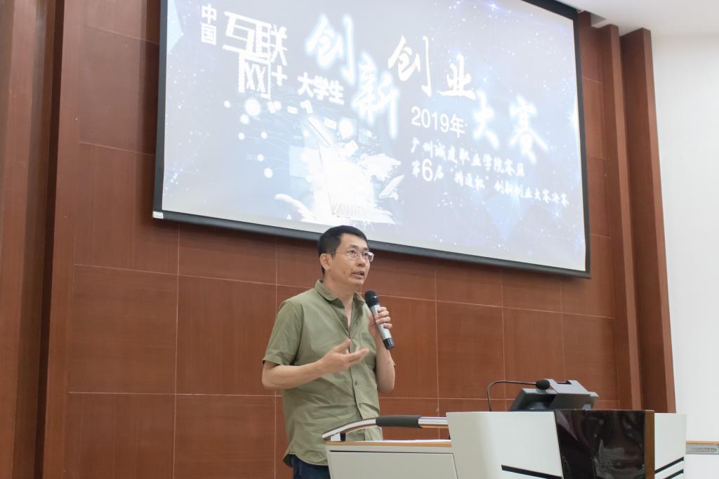 5月30日下午,第五届中国“互联网+”大学生创业创新大赛广州城建职业学院赛区选拔赛暨第六届“精通杯”创新创业大赛决赛在建工机电楼A101报告厅隆重举行。中山大学博士生导师、教授黄镰,从化科技工业商务和信息化局副局长董小星,从化区人社局劳动就业服务管理中心主任李耀明,朗恒集团副总裁陈少强,创业教育学院院长邱漠河、相关职能部门、二级学院领导及老师和学生代表出席本次大赛。