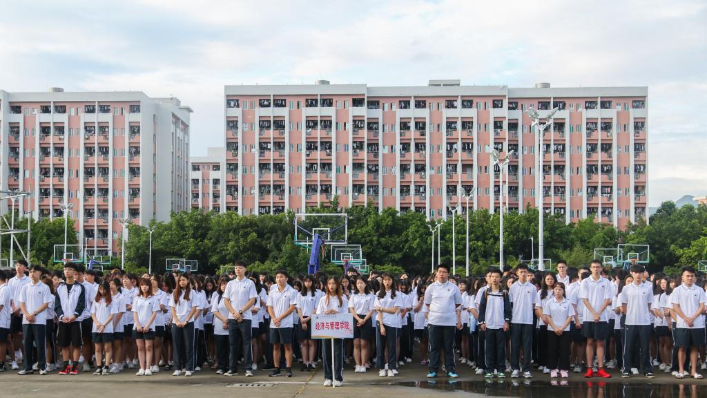 在中华人民共和国成立70周年之际,新学期伊始,9月2日早上,学校在三区文体广场举行“我为祖国升国旗”升旗仪式。学校党委书记、副校长杨清国,党委副书记、副校长张德宜,团委书记刘杰,各二级学院学工副院长,18级全体辅导员以及18级全体学生参加了此次升旗仪式。升旗仪式由学生处处长孔练光主持。