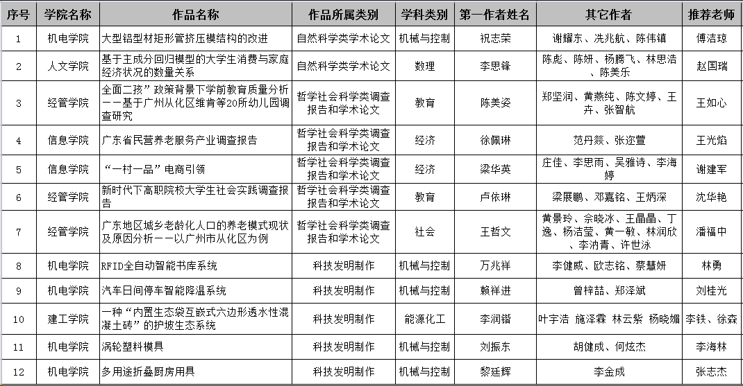 竞赛作品分为自然科学类学术论文、哲学社会科学类调查报告和学术论文、科技发明制作三大类。本次比赛从2019年1月份开始,历经3个多月的甄选和培育,最终共有28支队伍脱颖而出进入校决赛,经过评委专业、公正的评分,最终共有12个项目晋级全省决赛。