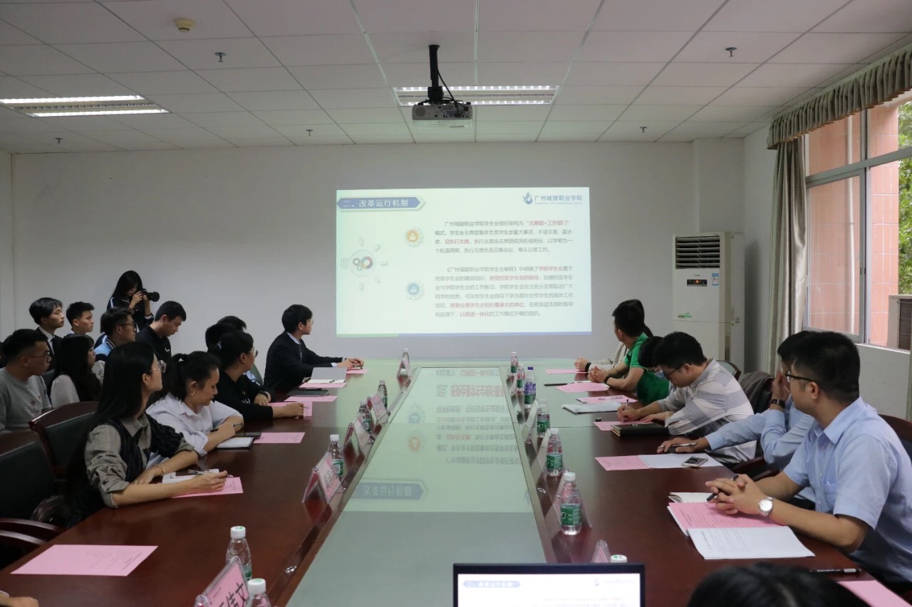 为落实共青团中央、教育部、全国学联下发的《关于推动高校学生会(研究生会)深化改革的若干意见》,以及《高校学生会组织深化改革评估工作方案》《关于开展广东高校学生会(研究生会)深化改革评估验收工作的通知》要求,持续深化学生会组织改革创新,11月17日,广东高校学生会组织深化改革第十工作组莅临永利官网开展学生会组织深化改革评估验收工作。团省委学校部联络员陈泳源,广州珠江职业技术学院校长助理、团委书记胡祥划,广州华商职业学院团委书记吴伟福,yL23411永利官网登录团委书记冯耀元,广州东华职业学院团委书记何俞燕,广州现代信息工程职业技术学院团委副书记陈鹏飞,永利官网党委副书记、副校长张德宜,校、院团学指导老师、学生会成员代表参加了评估验收会议,会议由团委书记刘杰主持。