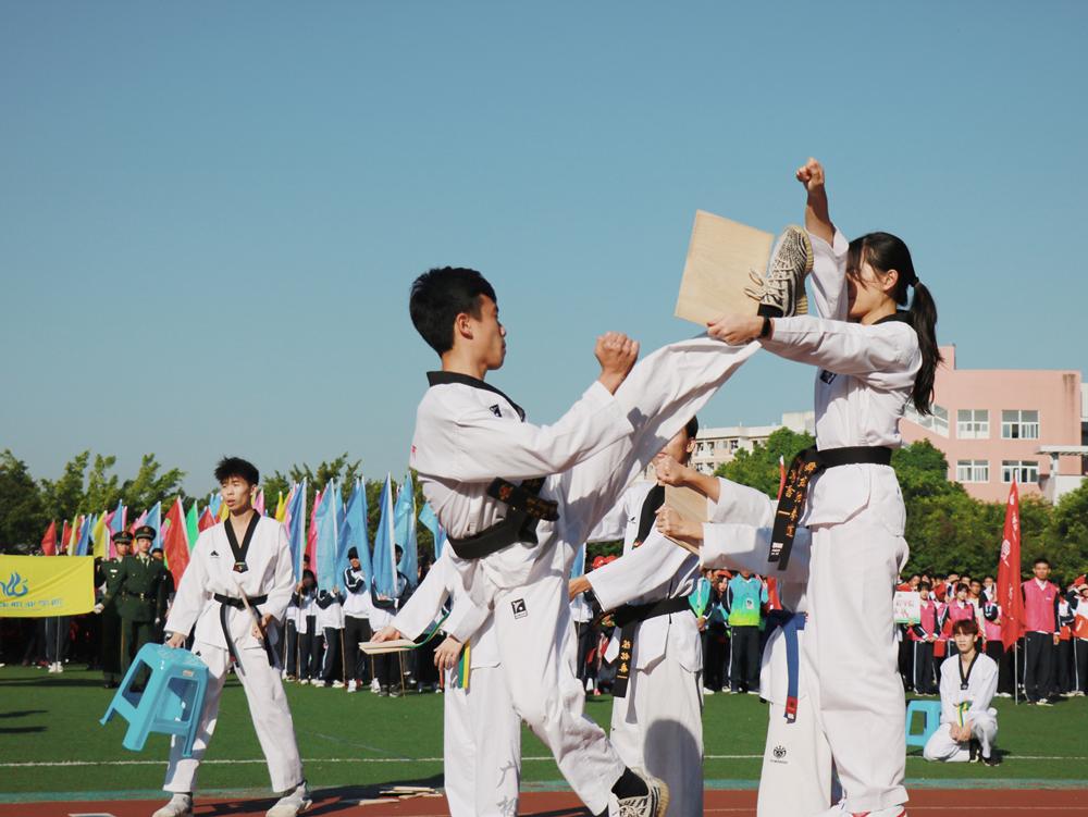 紧接着是开幕式节目表演。首先是由龙狮协会带来的《狮跃城建》。当铿锵有力、热闹非凡的锣鼓响起,雄狮腾翻、扑跌、登高、跳跃,舞出了城建人抖擞的精神状态;武术协会带来的跆拳道表演《青鸟》,在音乐的伴奏下,一招一式如行云流水,洒脱自如,展示出运动健儿坚韧不拔的意志品质;大学生艺术团健美操队和健美操协会的带来的表演《轻舞飞扬》,动感的旋律与充满活力的舞步相结合,展现出城建学子朝气蓬勃的青春风采,将开幕式推向高潮,赢得全场师生们阵阵掌声。