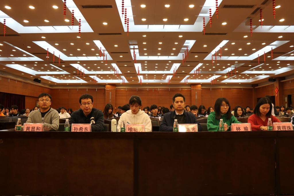 12月2日晚,2019年度校园十大“风云学子”评选在人文艺术楼四楼报告厅举办。学生处处长孔练光、校团委副书记黄得珠以及艺术与设计学院、继续教育学院、信息工程学院、人文学院等单位团学老师出席活动。