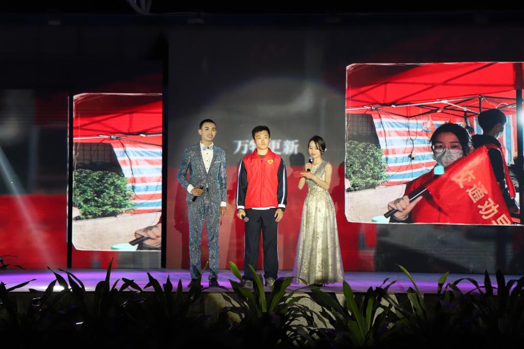 晚会还邀请到永利官网抗疫优秀志愿者代表黄俊瑜同学上台接受采访,他分享在志愿服务期间的感受:“每天看着大量的工作人员奔赴一线的抗疫战场,我在想,作为青年也应该为祖国、为家乡做些力所能及的事,就是这种想法驱使着我参加了一线抗疫任务!”