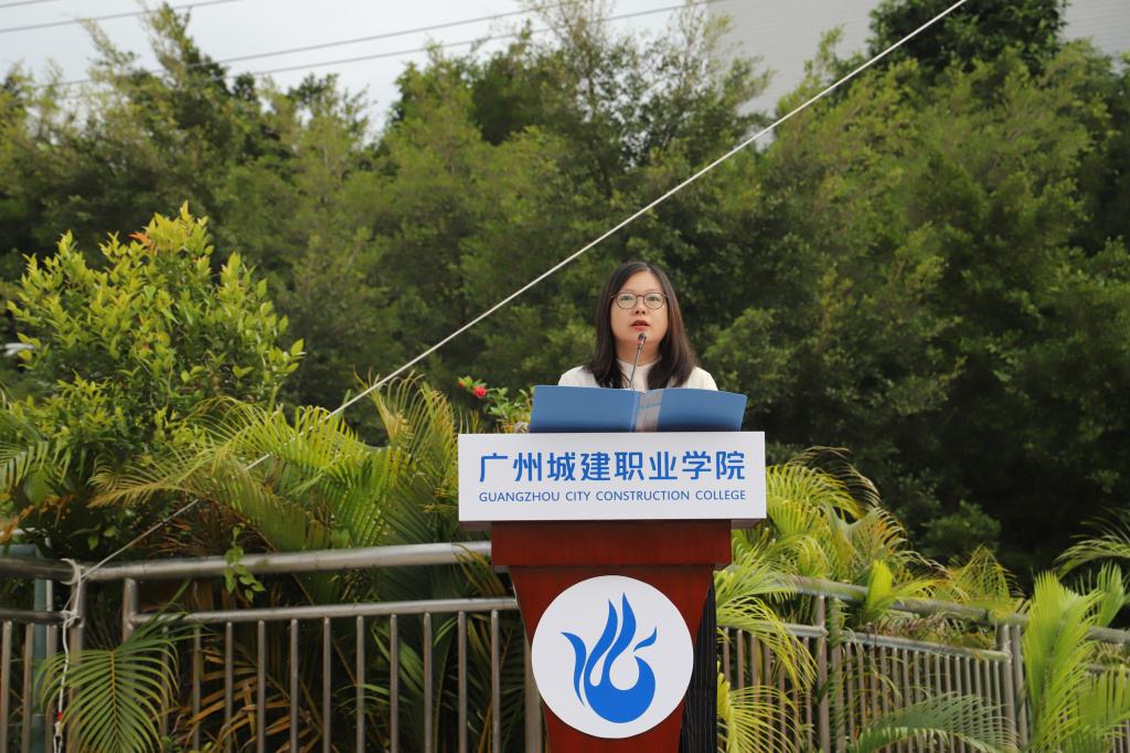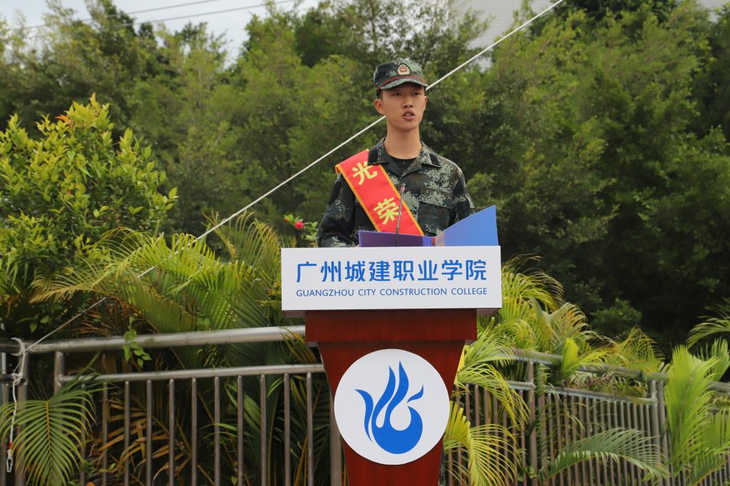 新生代表——艺术与设计学院徐可洋向半月来悉心教导的领导、老师、教官和师兄师姐们表示衷心的感谢。她讲述了在军训期间的收获与心得,表示将以良好的精神面貌迎接大学生活,为学校的发展贡献自己的青春力量。