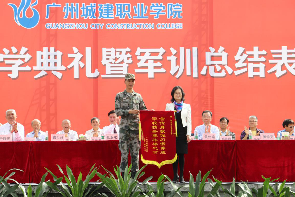黄学茭宣读了《关于表彰2020级学生军训先进集体和先进个人的决定》,并向承训单位颁发锦旗。