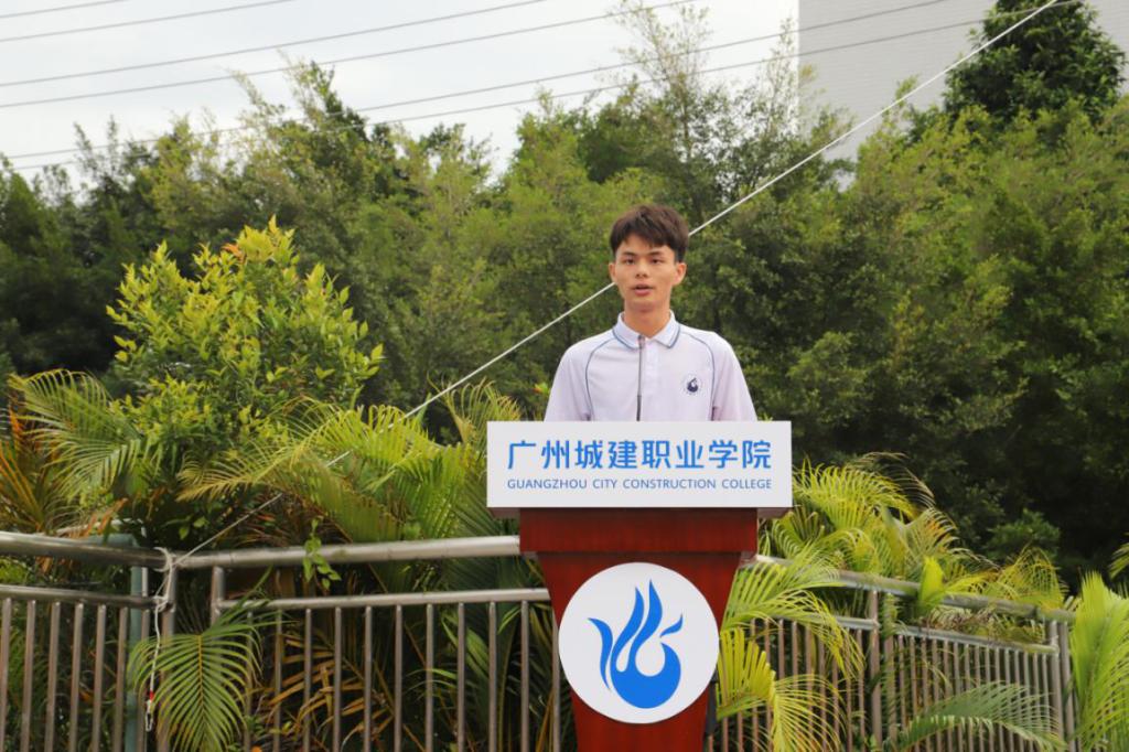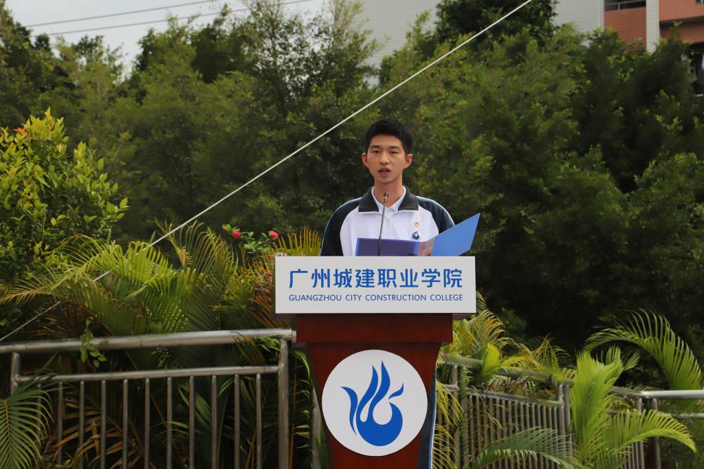 2020级退伍复学士兵代表——建筑工程学院陈国毅向学校领导、老师表达了最真挚的敬意和最衷心的感谢。他用质朴的语言畅谈了他在部队生涯的真实感怀,表示未来将把军人的优良作风发扬光大,以全新的面貌打造出一片真正属于自己的天空。