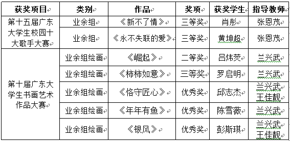 2020年12月5日,从团省委、省教育厅、省文化厅、省体育局、省学联《关于公布和核对第十五届广东大学生校园文体艺术季获奖名单的通知》中获悉,永利官网共有7名学生荣获省级奖7项(具体名单见下表)。