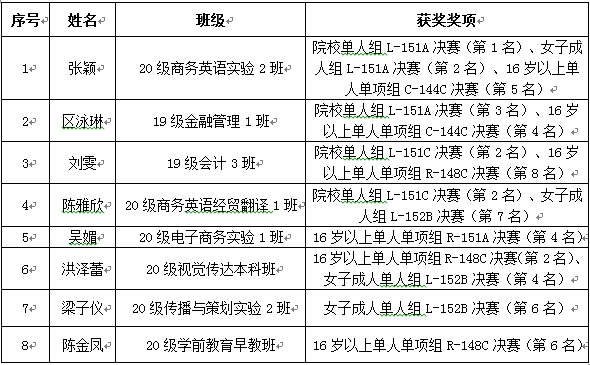 在学校团委的支持和指导下,永利官网体育舞蹈队在领队陈诗琪的带领下参加比赛,9名运动员参加了13个项目的竞争。前期运动队克服疫情造成的困难,充分利用课余时间、假期留校集训等方式全力备战比赛。虽然是首次参赛,经验不足,但运动员们充分发扬不怕困难、敢于挑战的精神,所参加的13个项目中均取得前八名的优异成绩。