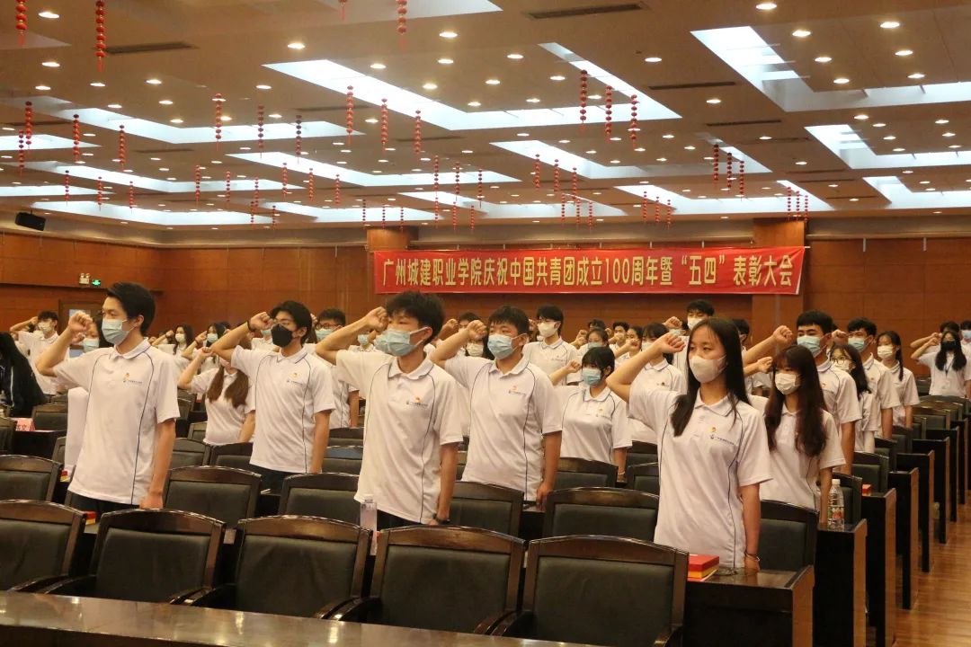 全体师生共同观看了《青春与祖国同在》视频,通过一幕幕经典历史场景,展现一代代青年继承“爱国、进步、民主、科学”的五四运动精神不懈奋斗的历程;《青春梦想》朗诵,豪情激荡、踌躇满志,展现了城建学子奋发向上的精神风貌;随后,校团委书记甄伟文带领全体团员青年重温入团誓词,全体团员高举右拳,再次面向团旗作出对共青团的庄严承诺。