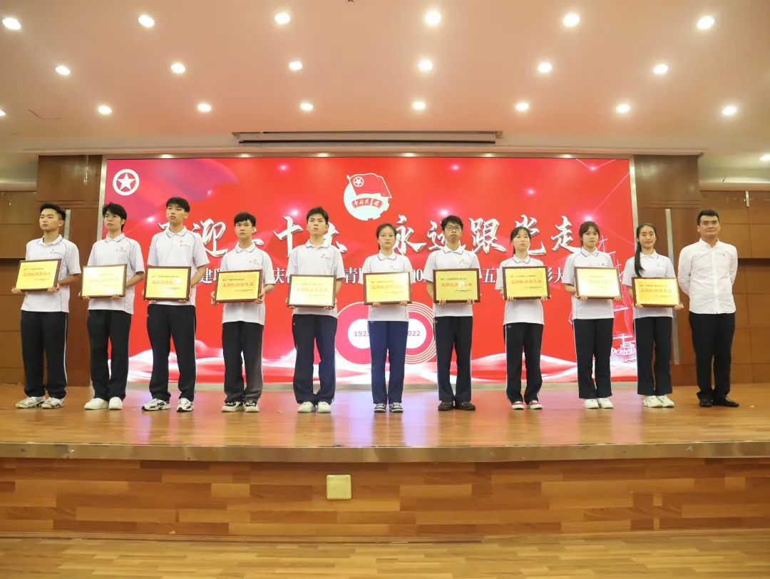 会上,与会领导为获得广东省五四红旗团委、五四红旗团支部,校级五四红旗团委、五四红旗团支部、优秀共青团干部标兵、优秀共青团员标兵等先进集体和个人颁奖。