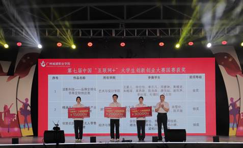 学校党委书记黄学茭为“第七届中国‘互联网+’大学生创新创业大赛广东省赛”获奖者颁奖