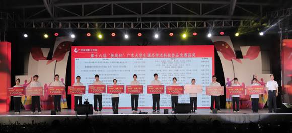 学校党委副书记鲁岩为“第十六届‘挑战杯’广东大学生课外学术科技作品竞赛”获奖者颁奖