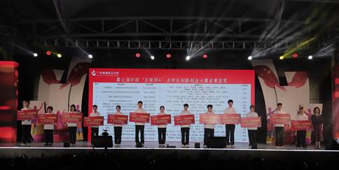 校长蒋新华为“第七届中国‘互联网+’大学生创新创业大赛国赛”获奖者颁奖