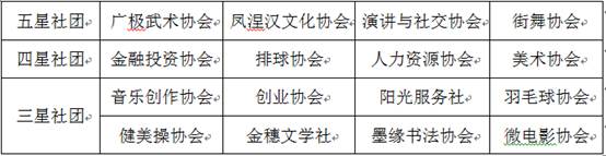 经过现场师生的评审,最终,广极武术协会、凤涅汉文化协会、演讲与社交协会、街舞协会荣获五星社团;金融投资协会、排球协会、人力资源协会、美术协会荣获四星社团;音乐创作协会等8个协会荣获三星社团。