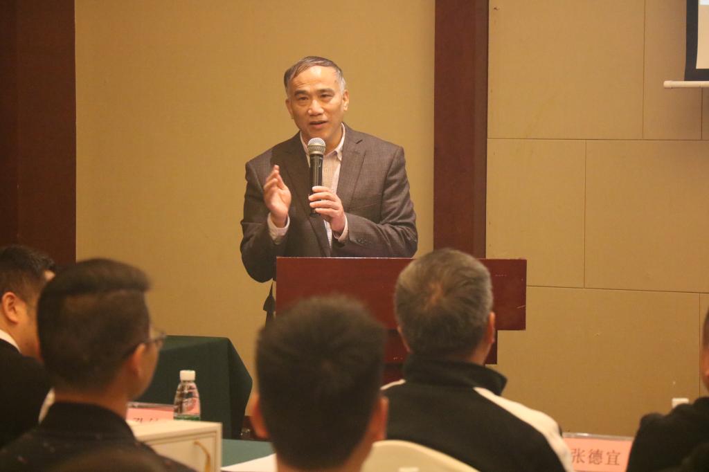 张德宜代表校友会报告“校友商会章程”,征询参会校友意见与建议,集思广益,为筹建成立校友商会奠定基础工作。
