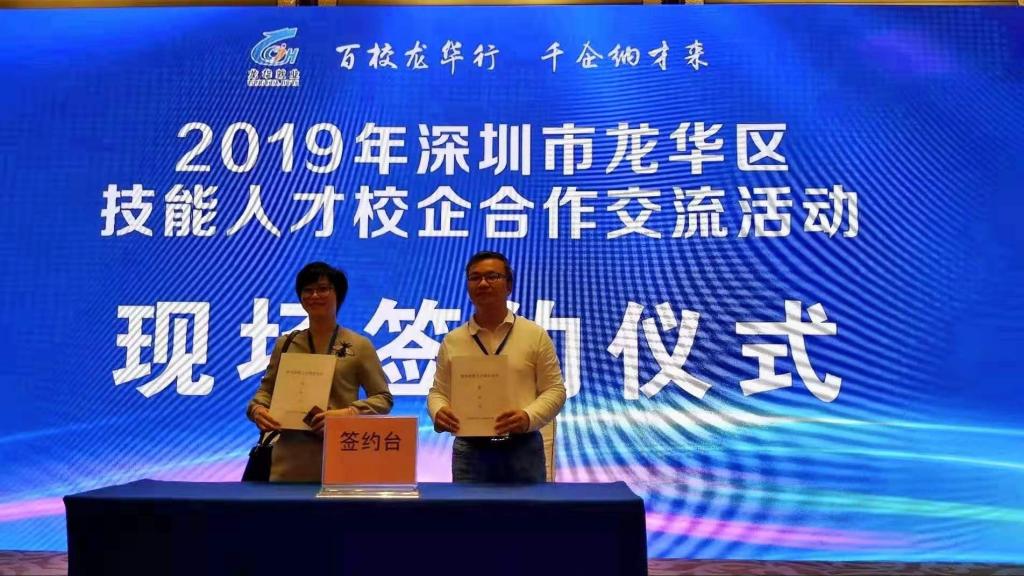 26日上午,由深圳市龙华区人力资源局主办的2019年深圳市龙华区技能人才校企合作交流活动在宝能科技园举行。活动期间,华润三九医药股份有限公司、深圳博才教育发展有限公司等30多家企业到学校展位进行洽谈,他们认为学校提供的“精准招聘与适岗培训”、“高技能人才在岗学历提升”方案对解决企业招聘难、培训成本大、员工稳定性差等问题具有重要作用。深圳博才教育发展有限公司等企业现场与学校签订校企合作预向书。