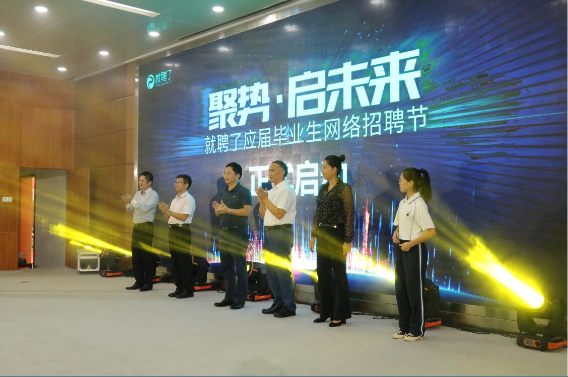 在高校和企业代表们的见证下,政校企领导和学生代表一起启动“就聘了”网络招聘节。