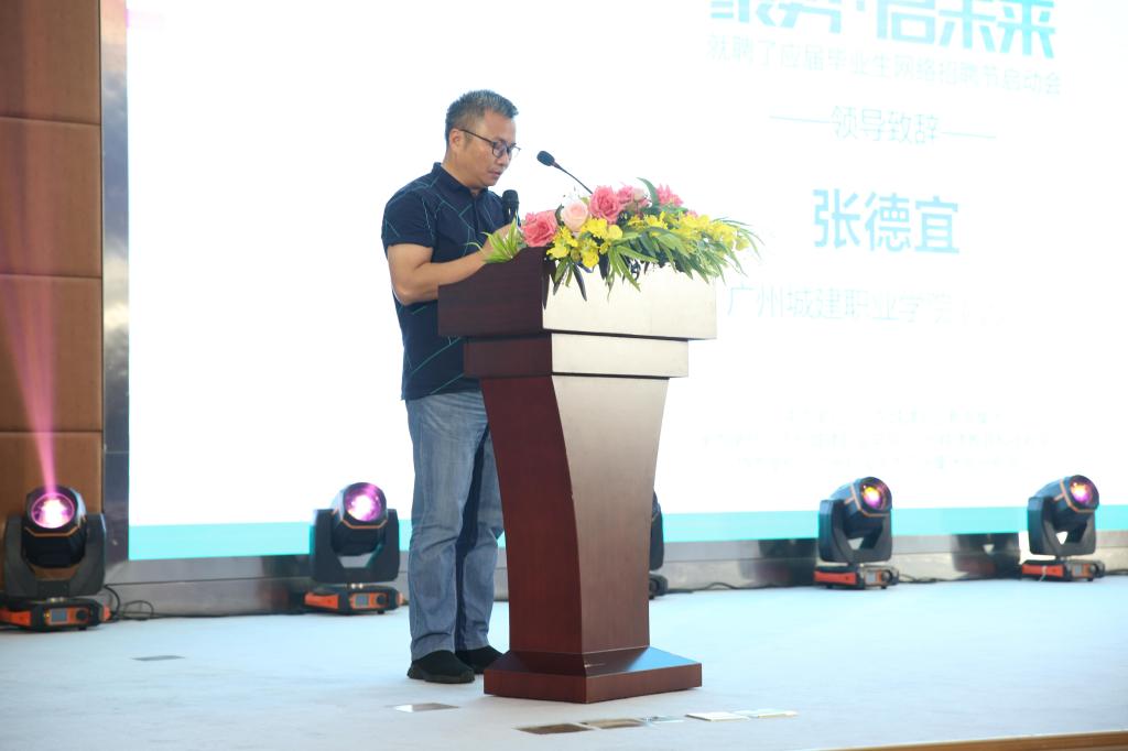 会议伊始,张德宜副校长代表学校致辞,他指出:学校兄弟单位广州精通教育科技有限公司开发“就聘了”网络招聘求职服务平台,并举办“就聘了应届毕业生网络招聘节”,旨在通过信息化的手段解决线下时间、场地资源不足的问题,打破高校就业信息网仅供本校学生使用的壁垒,以更加贴近学生喜欢的方式举办新型校招方式,让企业和毕业生充分共享招聘求职信息资源,共同促进毕业生高质量充分就业。