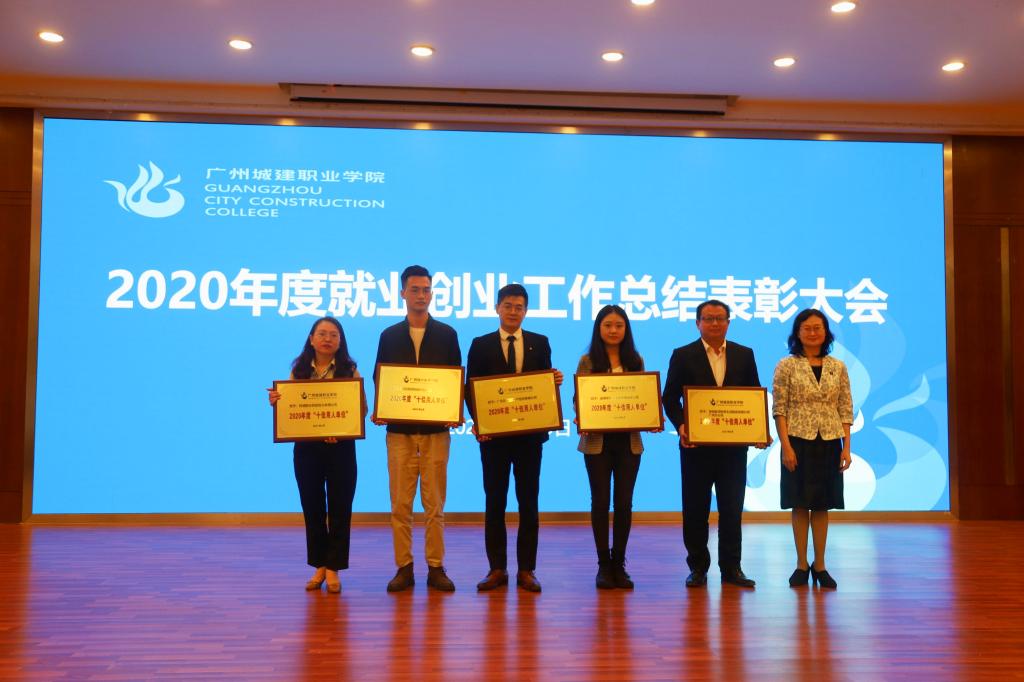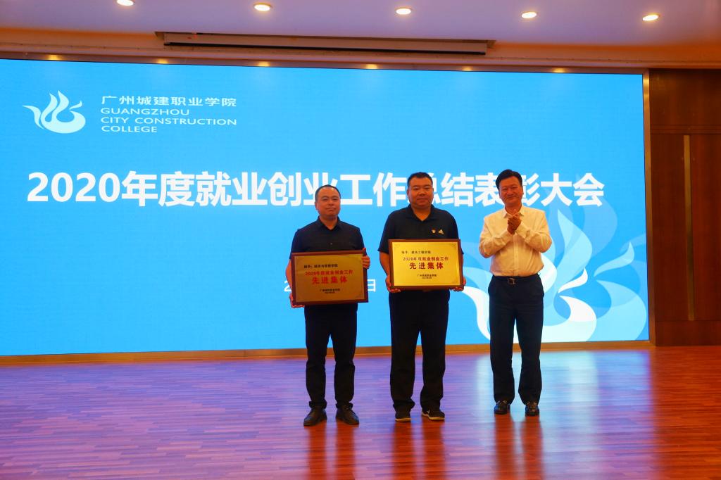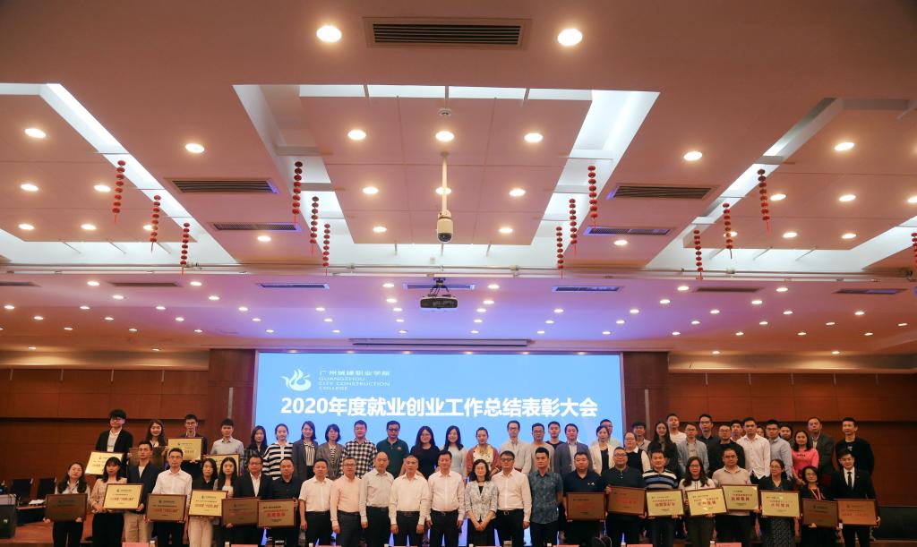 党委书记黄学茭、副校长杨清国分别宣读《广州城建职业学院关于表彰2020年度就业创业工作先进集体和个人的决定》、《广州城建职业学院关于授予科顺防水科技股份有限公司等企业2020年度“十佳用人单位”称号的决定》。张亚斌及校领导为获奖单位和个人颁奖。