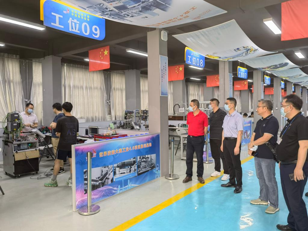 为深入了解广州市机电技师学院“聚焦产业发展,优化专业布局;聚焦技能竞赛,培育大国工匠;聚焦产教融合,深化校企合作”的办学特色,张德宜一行在谢广伟等的陪同下实地参观机器人系统集成项目集训基地、计量检测中心基地、施耐德电气实践基地等。张德宜对该校“引进企业盘活教学仪器设备真生产,按企业高标准培养学生技能”的产教融合、校企合作模式给予高度的赞扬。
